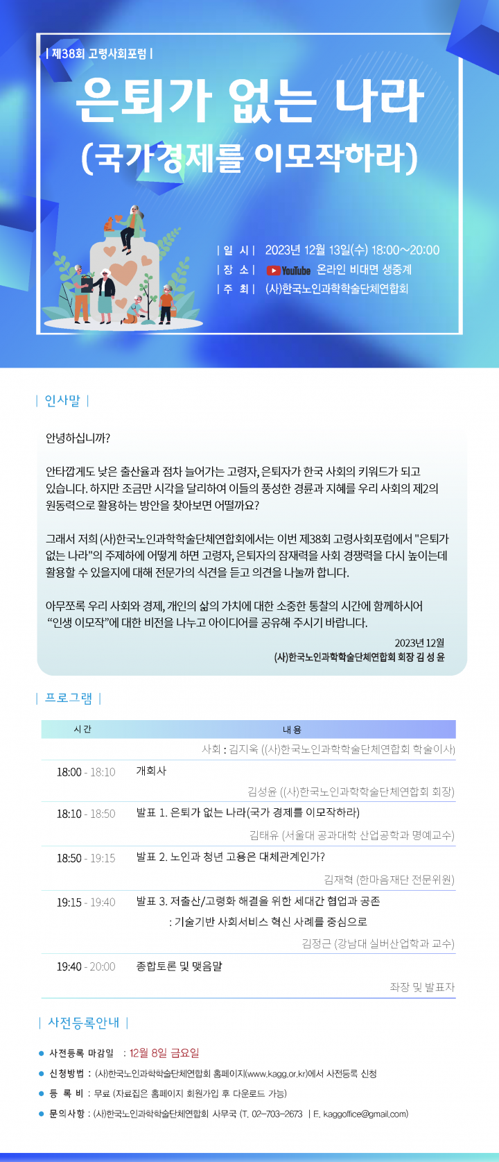 한국노인과학학술단체 연합회에서 진행되는 포럼을 회원님들께