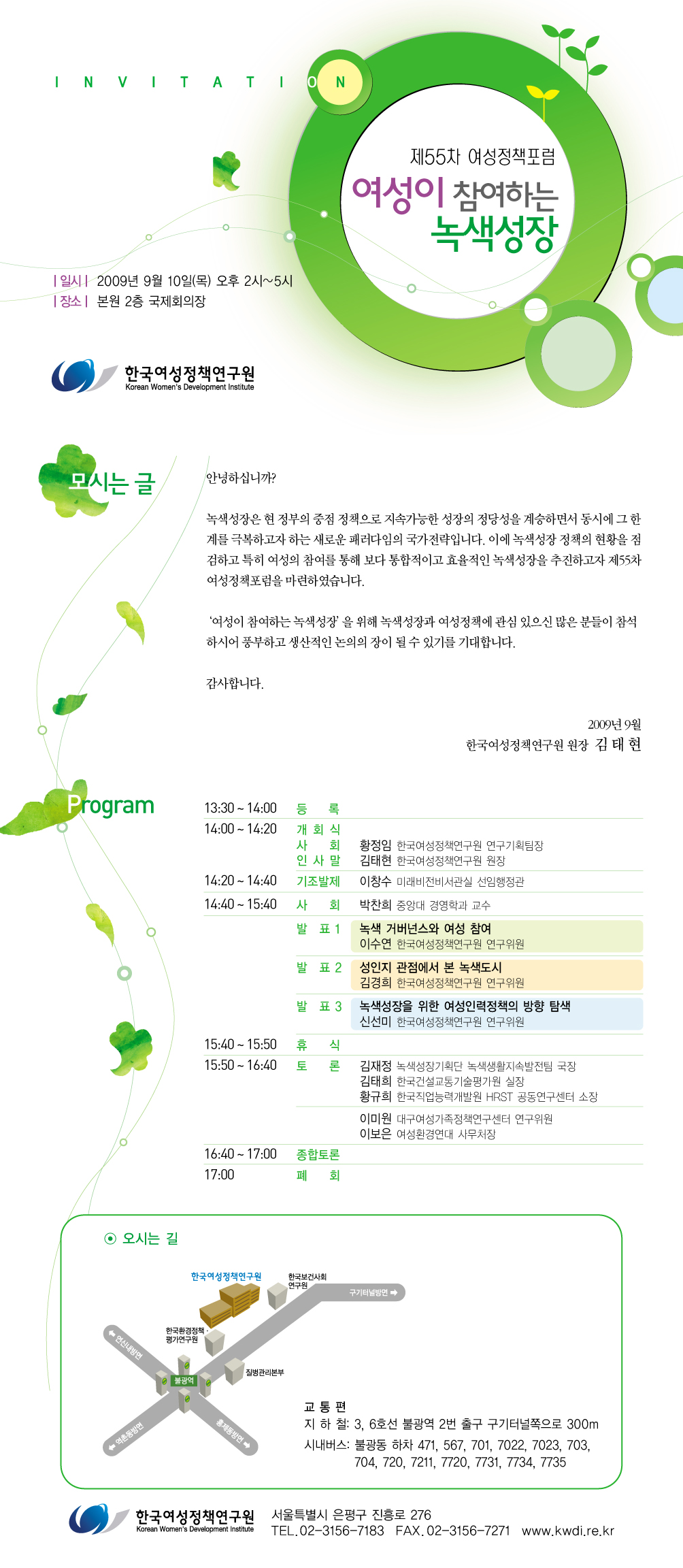 <"여성이 참여하는 녹색성장" 제55차 여성정책포럼 일정>
