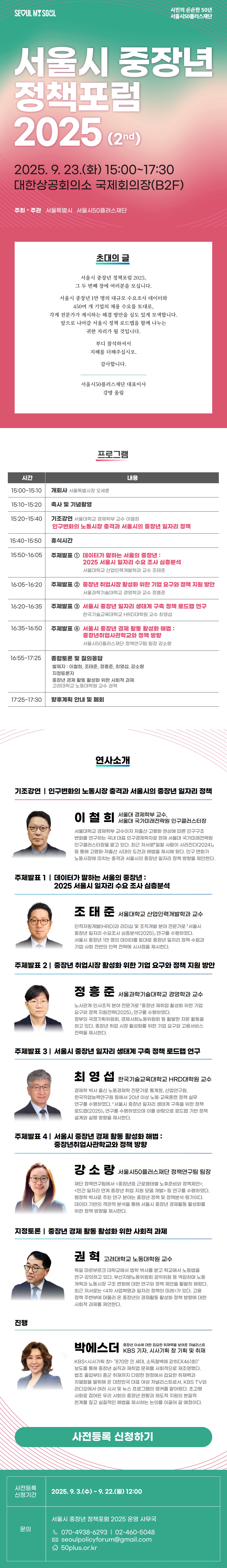 (9/23) [서울시50플러스재단] 서울시 중장년 정책 포럼 2025