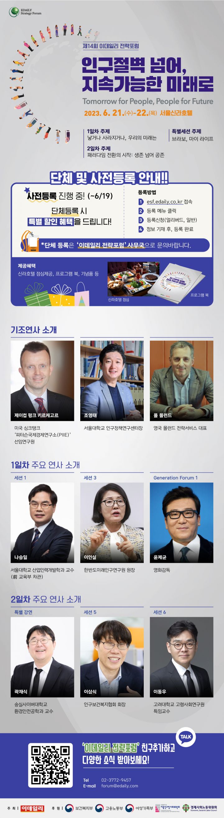오는 6월 21일(수)부터 22일(목)까지 서울 신라호텔에서 개최되는 「제14회 이데일리 전략포럼」은 ‘인구절벽 넘어, 지속가능한 미래로’를 주제로 열립니다.
