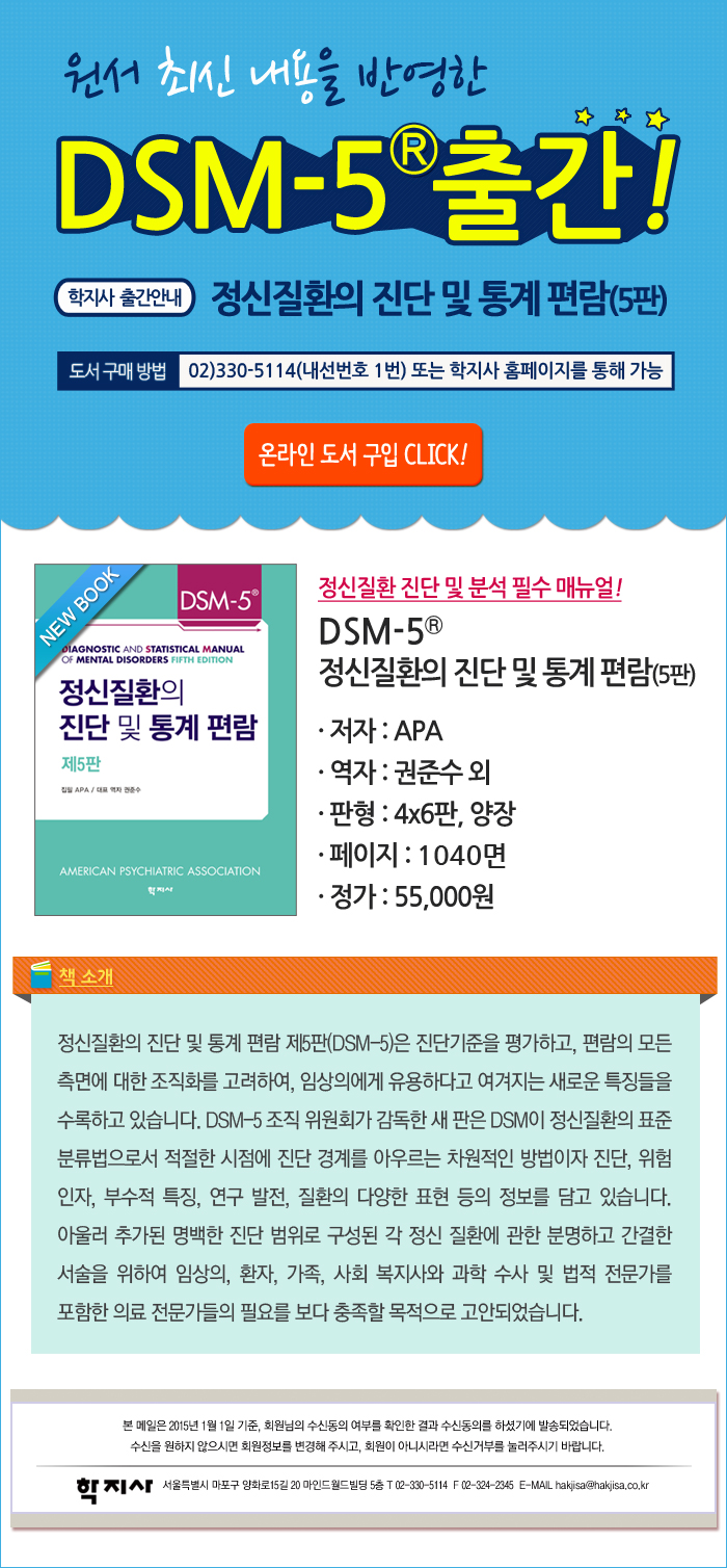 [학지사]최신 내용을 반영한 DSM5 번역서 출간 안내! (2015-05-11)