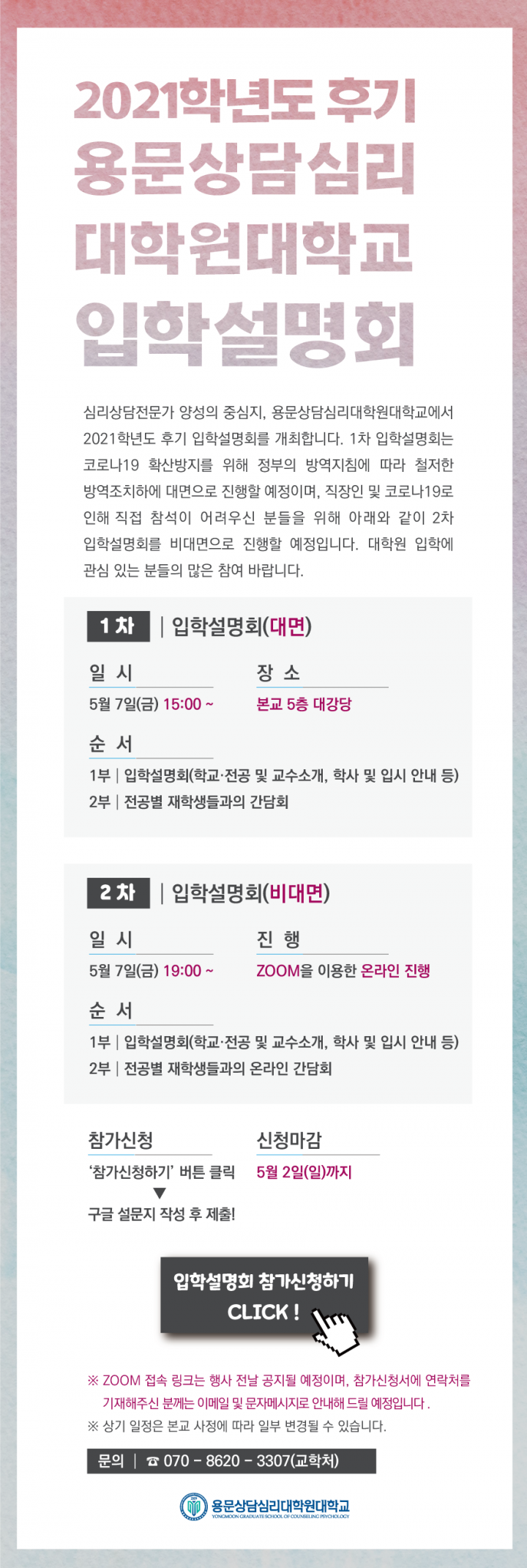 2021학년도 후기 입학설명회를 개최하여 아래와 같이 안내드립니다.