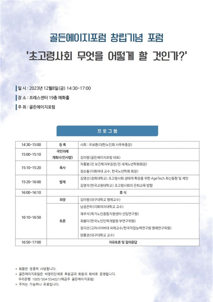 [안내] 골든에이지포럼 창립기념 포럼_'초고령사회 무엇을 어떻게 할 것인가?'