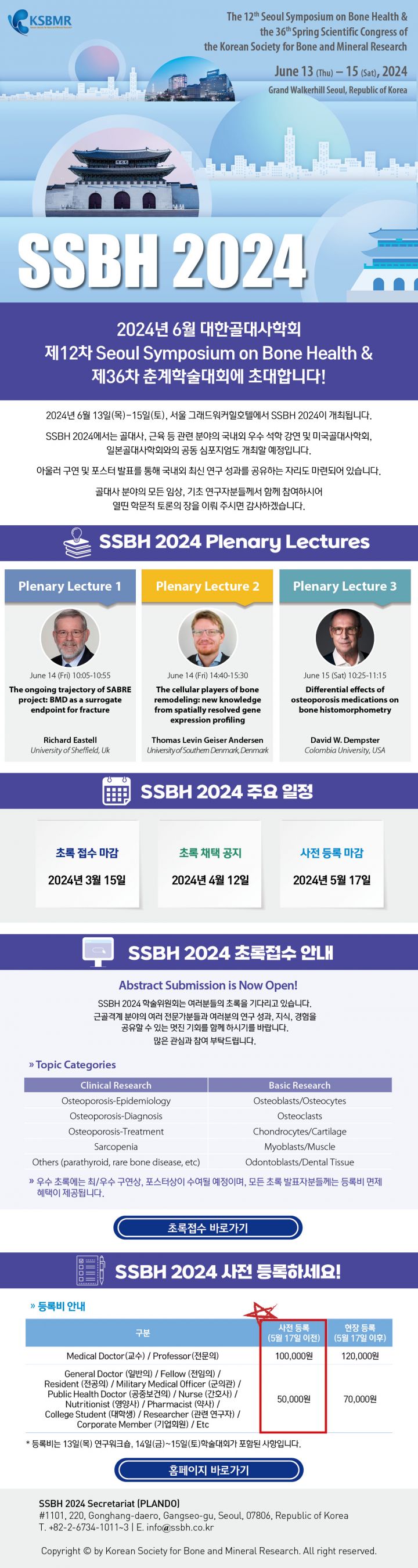 -행 사 명: 2024년 대한골대사학회 The 12th Seoul Symposium on Bone Health (SSBH 2024) & 제36차