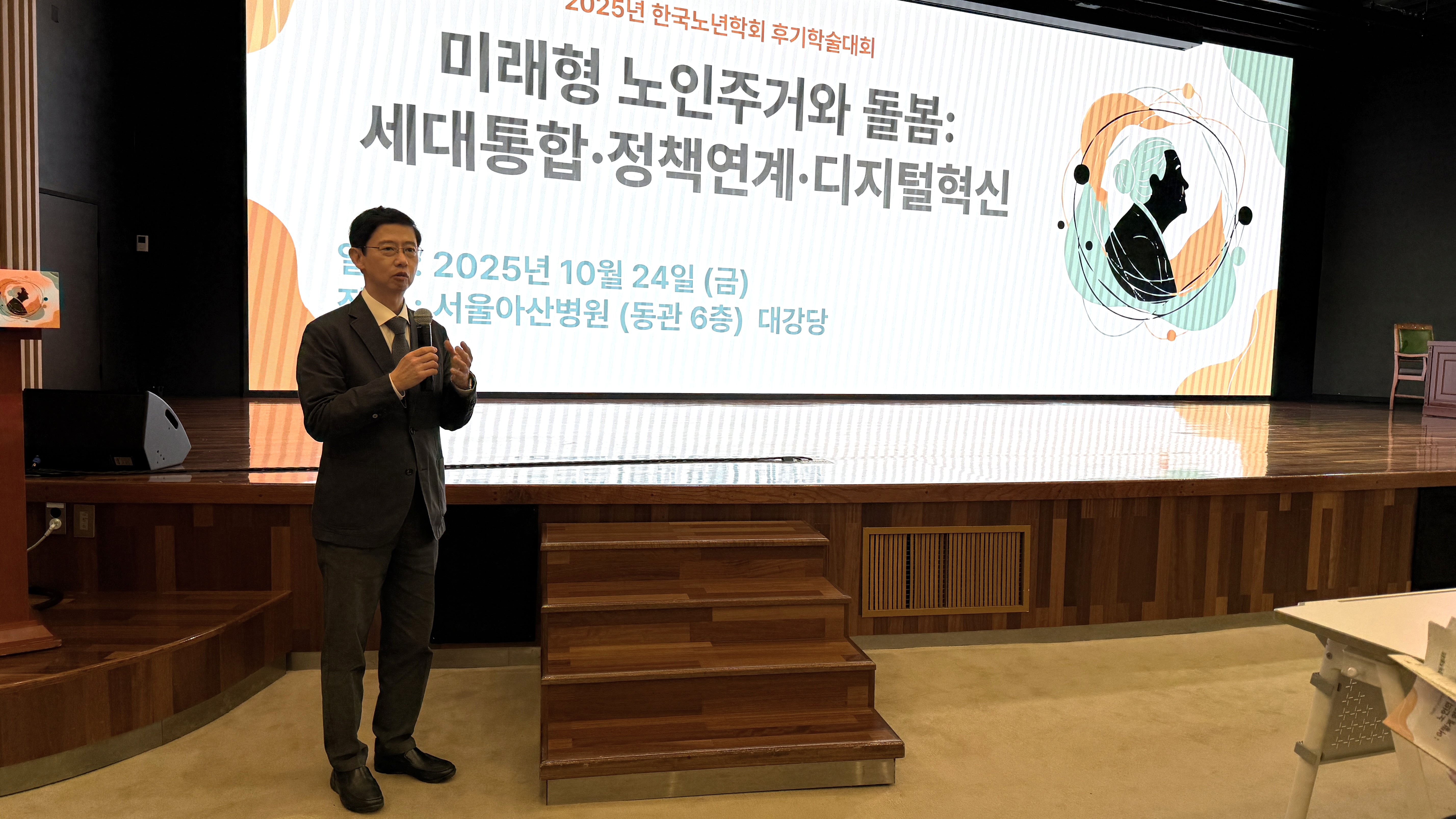 한국노년학회(회장 이윤환)는 2025년 10월 24일(금) 서울아산병원 동관 4층 대강당에서 《2025년 한국노년학회 후기학술대회》를 성황리에 개최했다. 이번 학술대회는 "미래형 노인주거와 돌봄: 세대통합·정책연계·디지털혁신"을 주제로, 급변하는 고령사회 속에서 세대 간 공존과 기술 혁신을 기반으로 한 주거·돌봄 정책의 새로운 방향을 모색하기 위해 마련되었다.