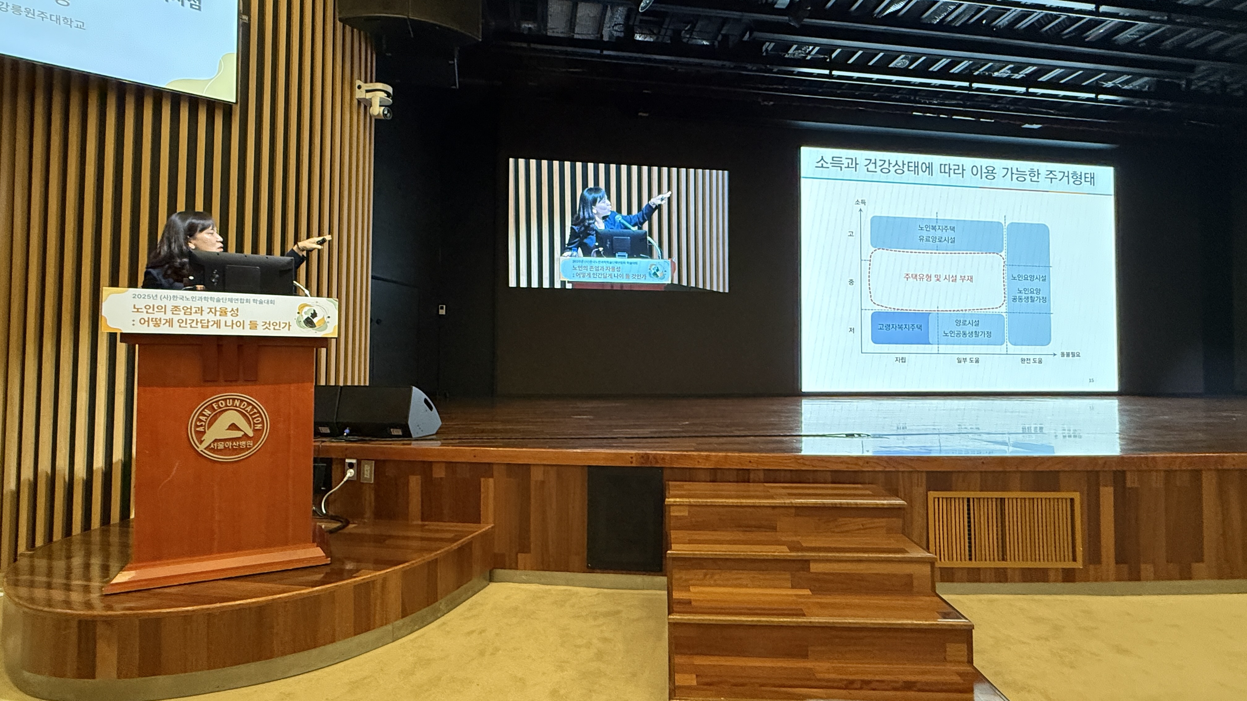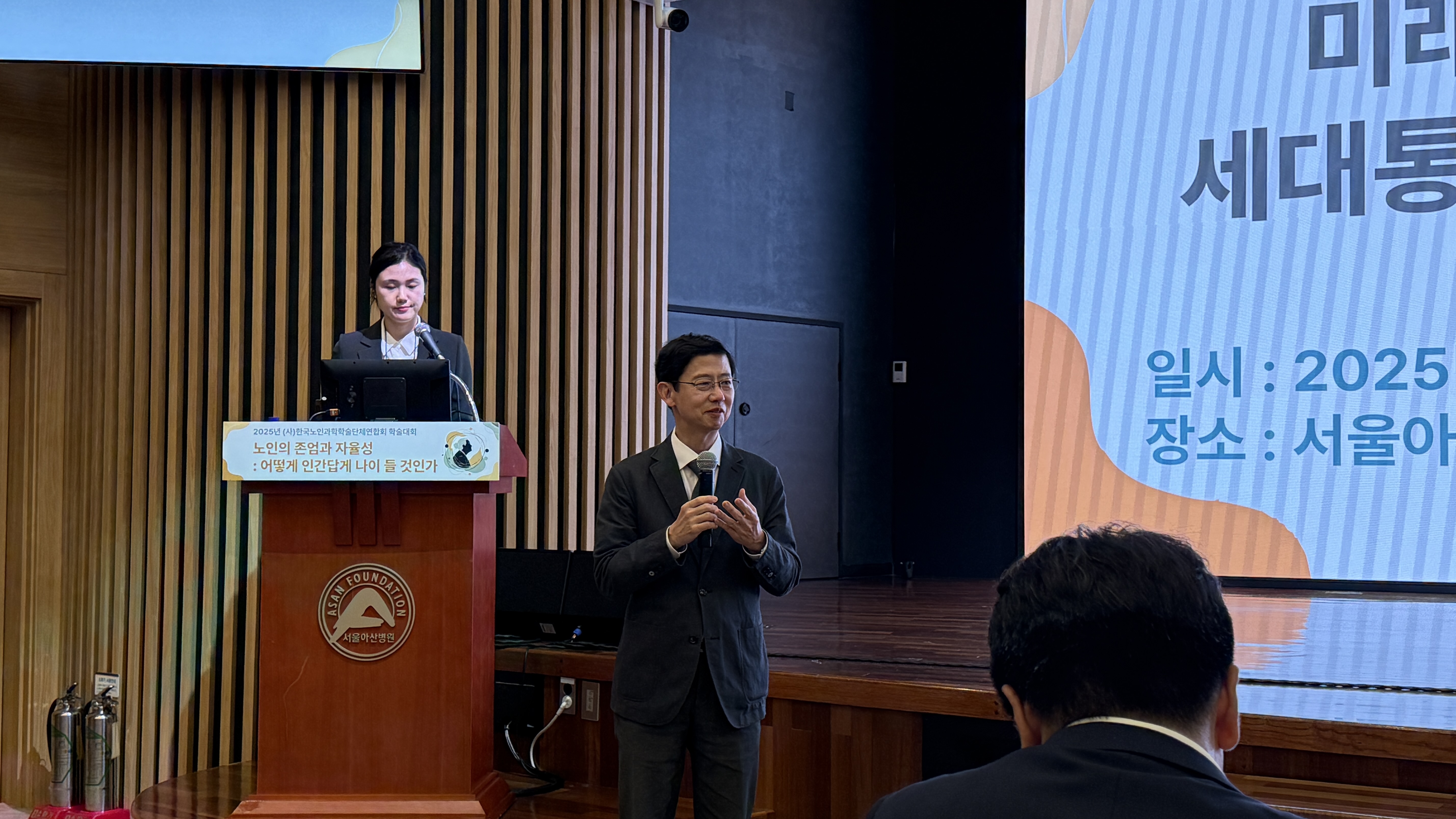 개회식은 장지은 한국노년학회 총무부회장(동국대)의 사회로 진행되었으며, 이윤환 회장(아주대)이 개회사를 통해 “고령화의 심화 속에서 노인주거와 돌봄의 통합적 접근이 시급한 과제”임을 강조했다. 이어진 주제발표 세션에서는 김정근 교수(강남대)가 좌장을 맡아 학문적 통찰과 현장 사례를 아우르는 심도 깊은 발표가 이어졌다.