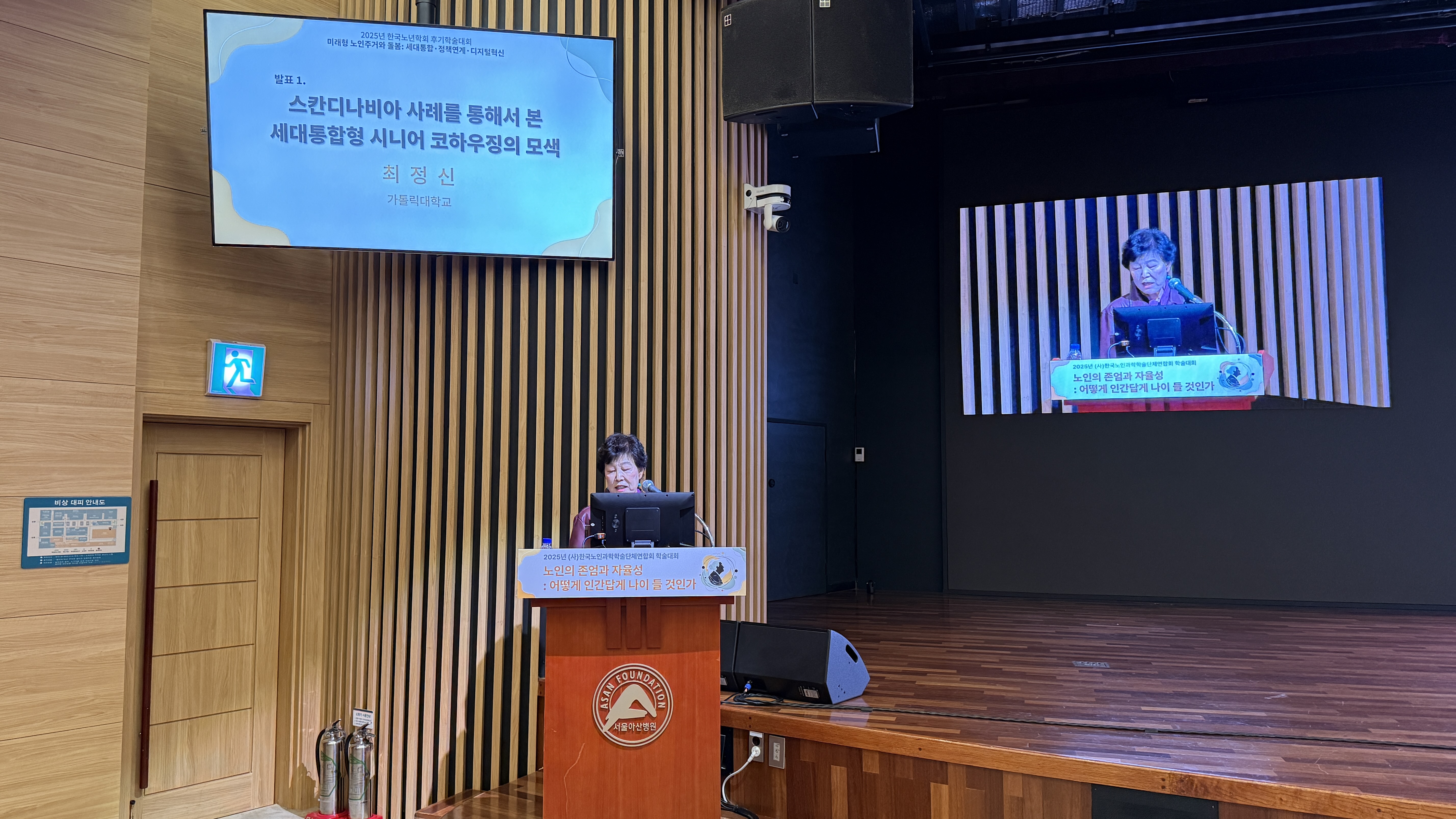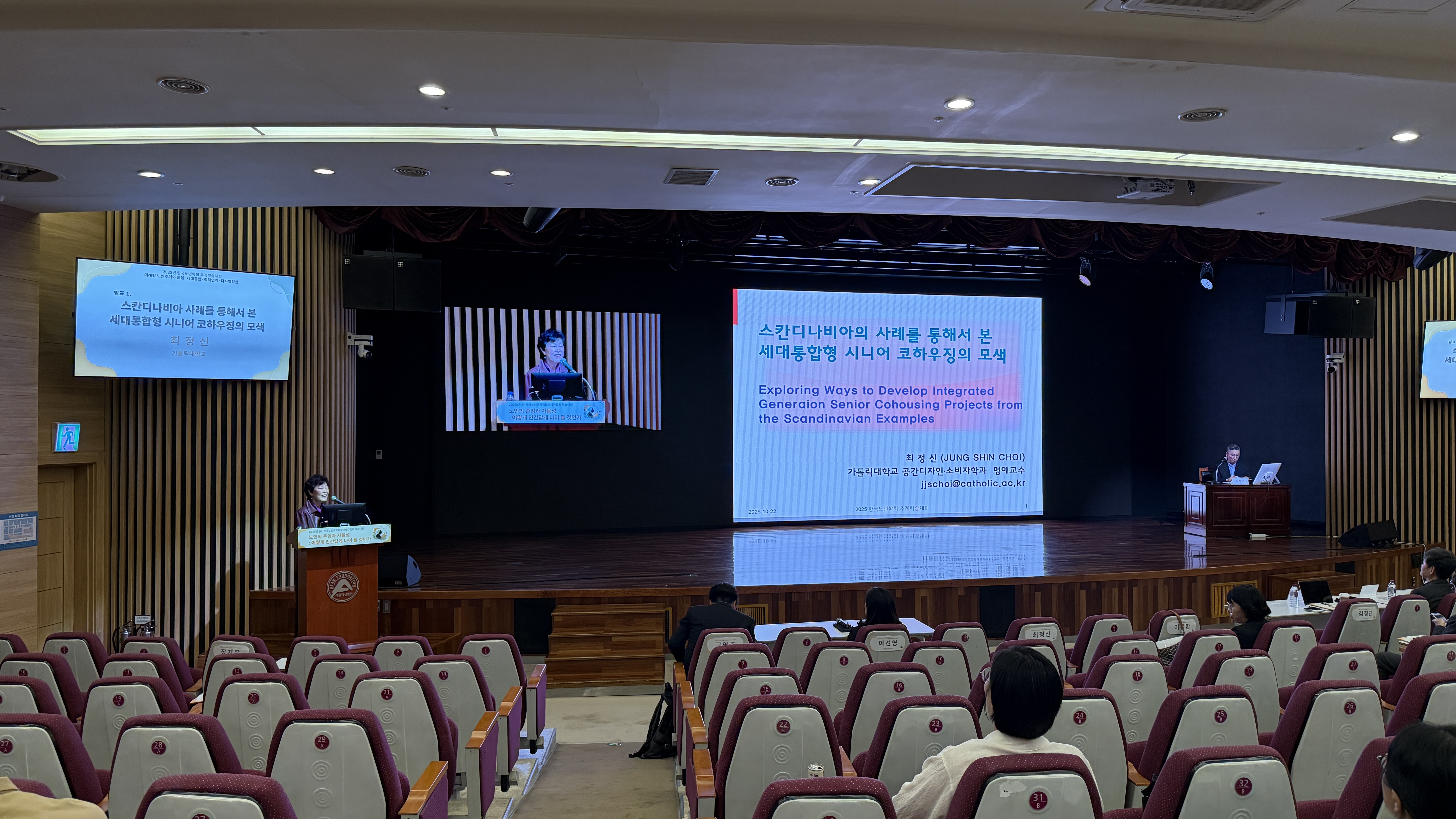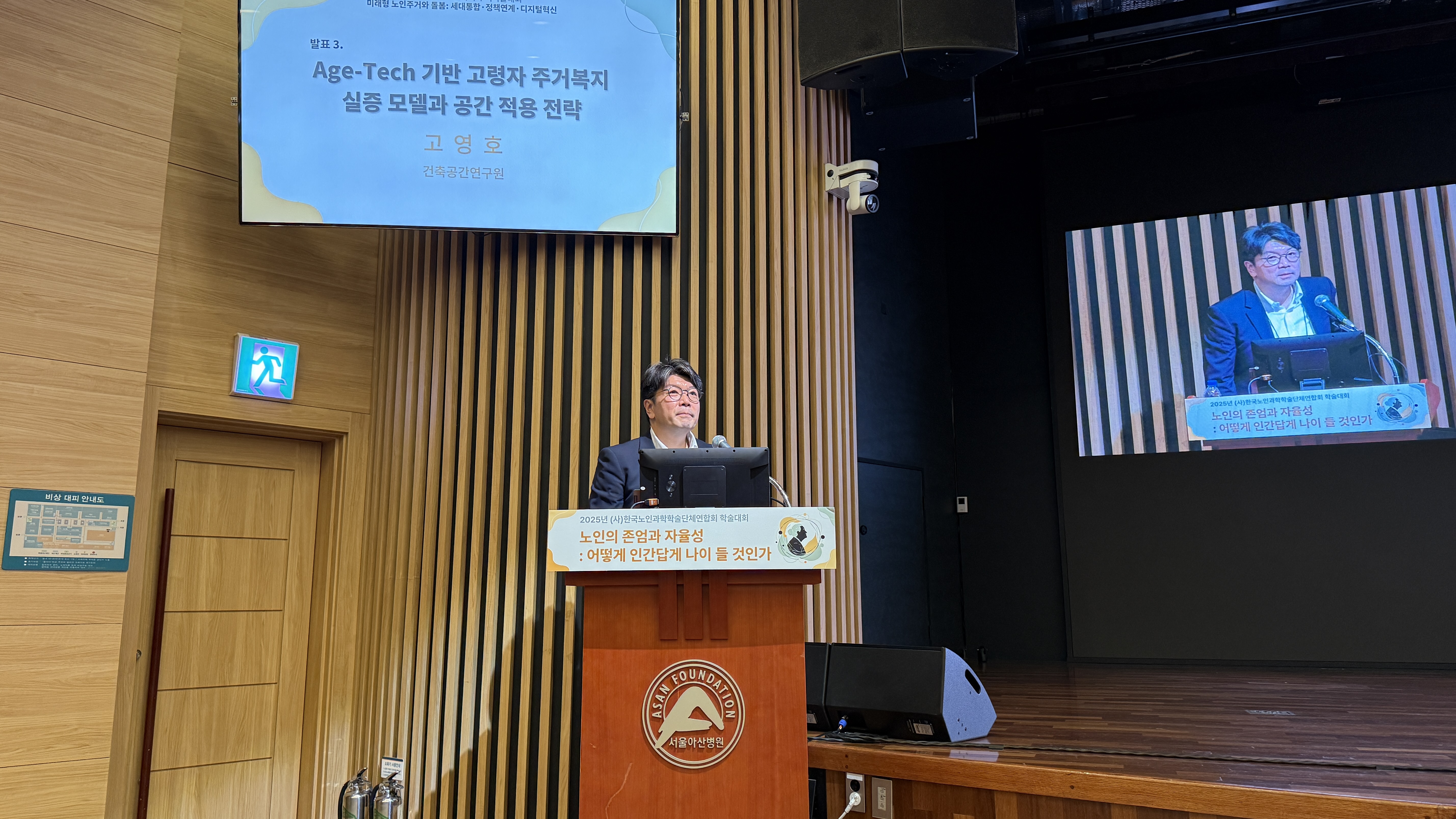 첫 번째 발표에서 최정신 교수(가톨릭대)는 스칸디나비아 사례를 통해 세대통합형 시니어 코하우징의 가능성을 제시했으며, 이선영 교수(국립강릉원주대)는 일본의 노인주거와 개호서비스 연계 현황을 분석해 우리나라 정책에의 시사점을 제안했다. 고영호 연구위원(건축공간연구원)은 Age-Tech 기반 고령친화 주거복지 실증 모델과 공간 적용 전략을 발표하며 디지털 기술을 활용한 새로운 돌봄 체계의 방향을 제시했다.