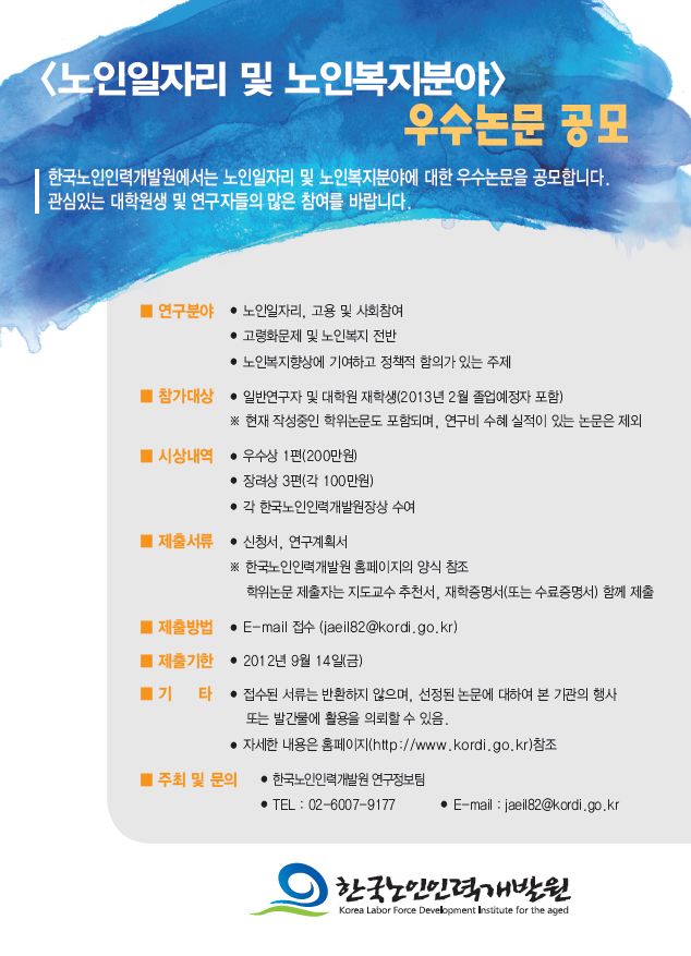 노인일자리 및 노인복지분야 우수논문 공모 안내 (2012-08-17)