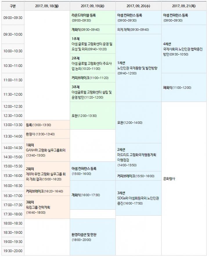 행사명: 제2차 아셈 노인인권 컨퍼런스