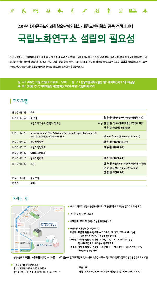 ‘국립노화연구소 설립의 필요성’ 주제로 정책세미나를 아래와 같이 개최합니다.