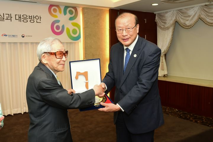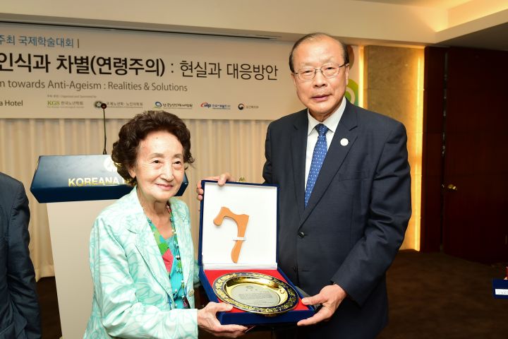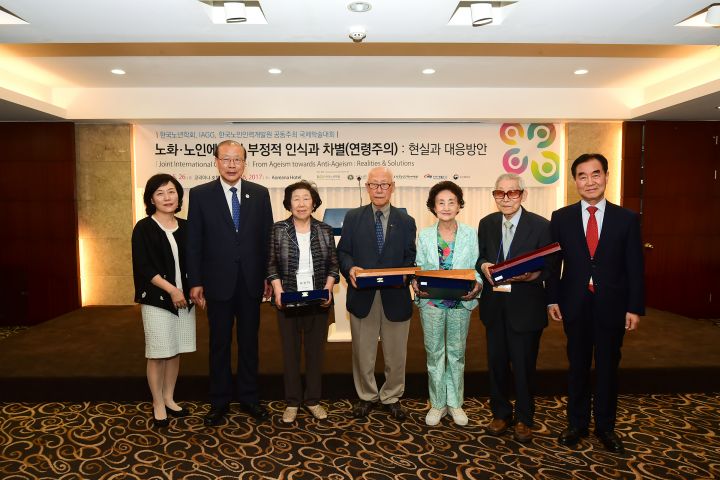 하시고, 1999년 제6차 IAGG 아시아·오세아니아 지역대회와 제20차 IAGG 세계 대회의 한국 유치 및 성공적 개최, 그리고 2013년 이후한국이 IAGG 회장국으로서 그 역할을 원활히 수행하는데 뛰어난 지도력 발휘 및 적극 후원 등 지대한 공로가 인정되어 공로패를 받으시게 되었습니다.